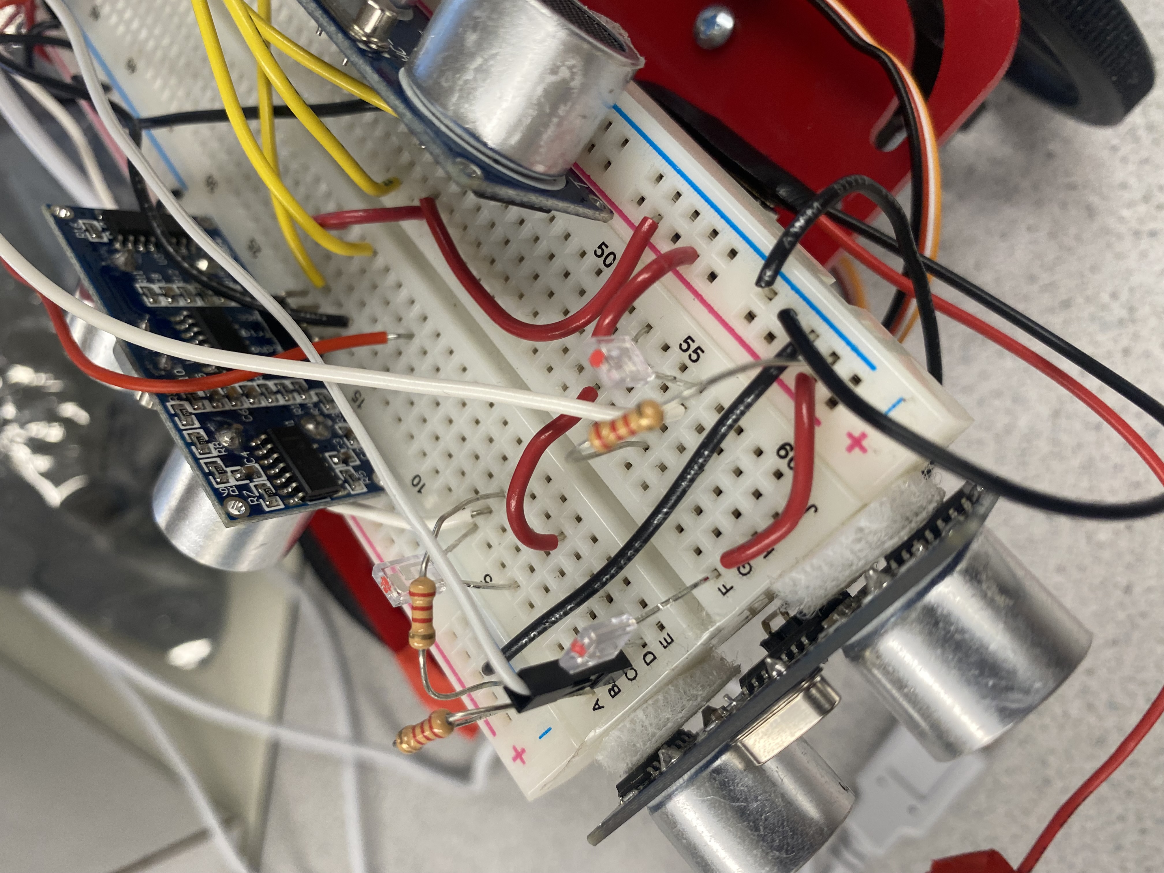 In this final lab for Intelligent Physical Systems [ECE 3400], our goal was to assemble all the parts of our previous labs into one script. This includes the phototransistors for LED detection, microphone and op amp circuit for frequency analysis, antenna for receiving and sending radio information, ultrasonic sensors for wall detection, and servos for movement.